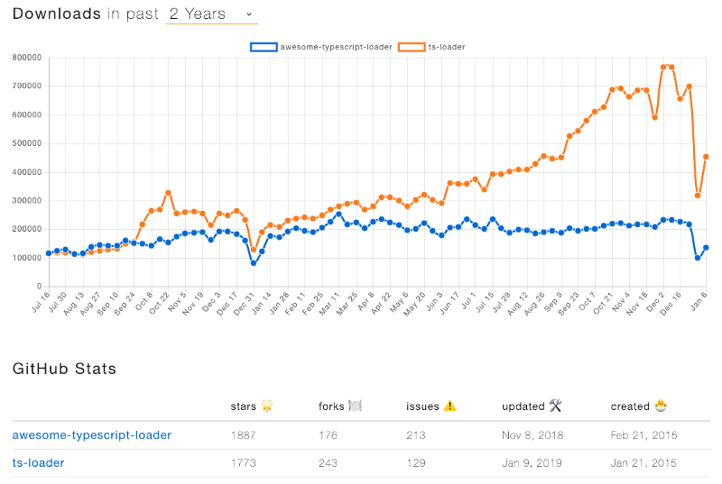 npm trends (awesome-typescript-loader vs. ts-loader)
