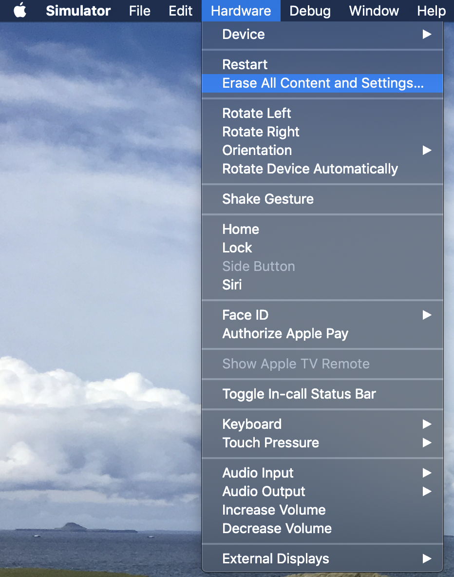 근데 이 방법 모두 실패했고, 아래처럼 시뮬레이터에 기록된 정보를 지우니 깔끔하게 해결됐다.